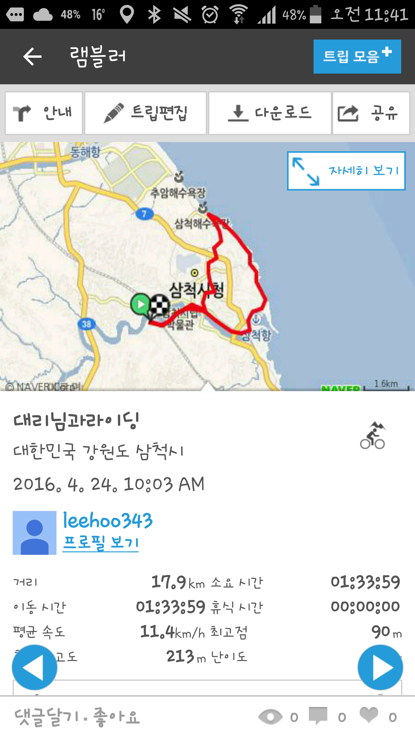 저도 선배님도 대만족 하고 즐거운 라이딩 했습니다.