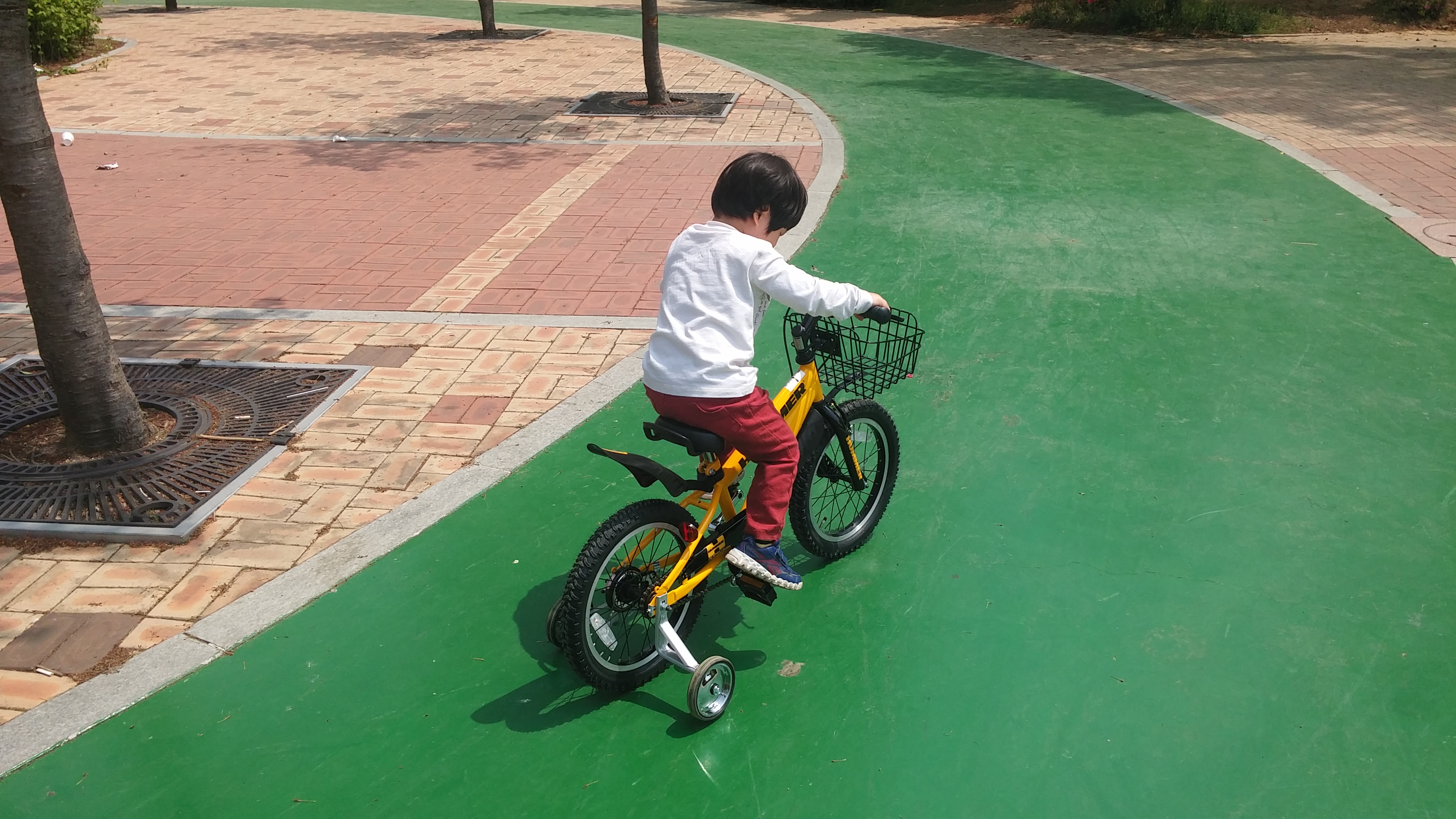 아이가 신이 나서 페달을 구르고 있는 것 같아서