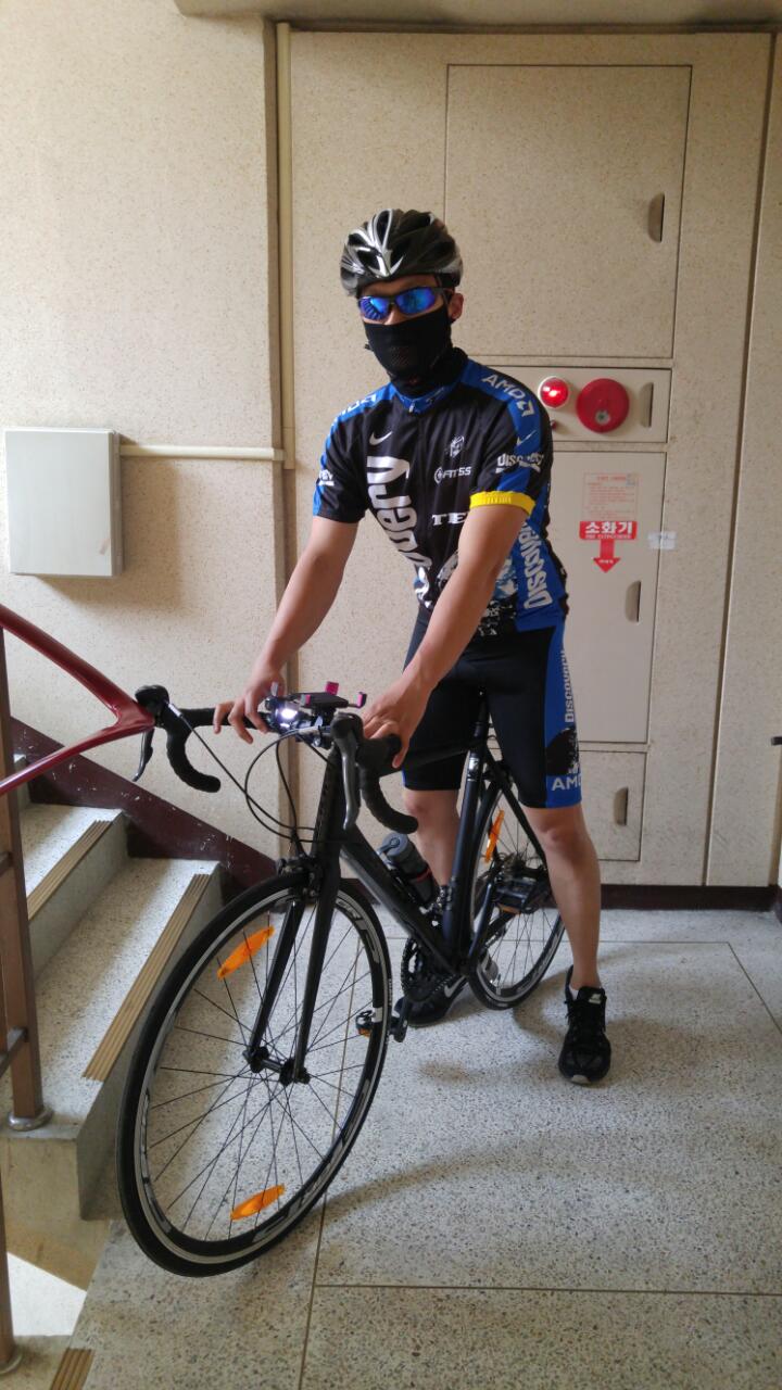 헬멧 선글라스 싸이클복 등 여러장비 갖추고 밖에 나갈준비 완료~