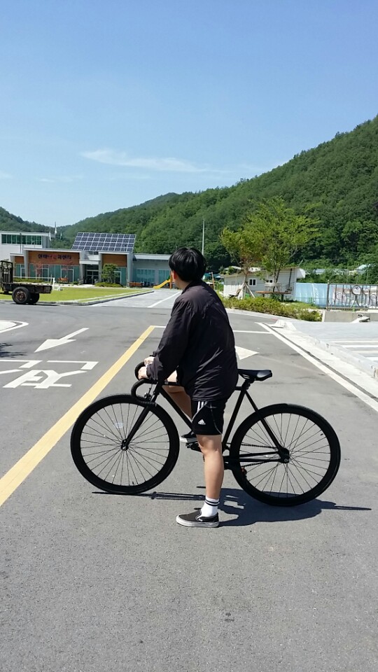 픽시는 처음 타보는건데 밟는만큼 쭉쭉 나가니까 그게 또 매력인거 같아요