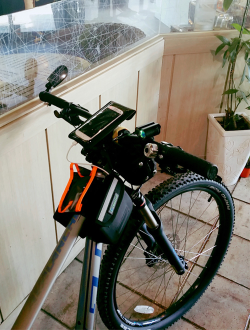 탑튜브가방 속에 보조배터리 나란히