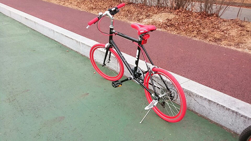 집 앞 자전거 도로에서 타보니, 무게가 가볍워 힘들이지 않고 속도를 높일 수 있습니다.