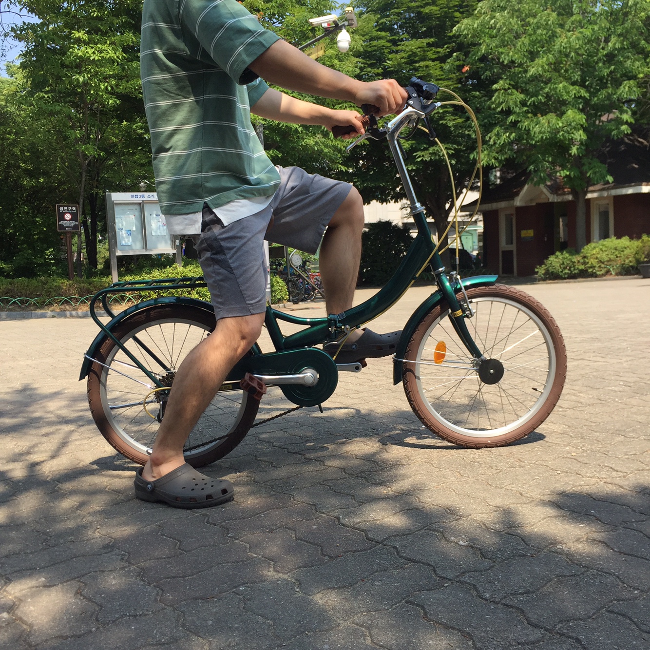포토 후기 올립니다! 제 자전거인데 남자친구가 탄 모습이라 안장 높이 조절이 조금 어색해 보일 수도 있지만 4일간 타본 결과 굉장히 편하고 귀엽습니다!!