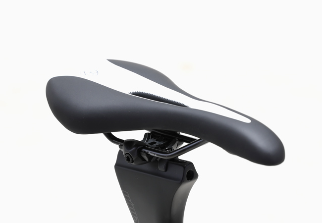 포스가득한 에어로 프레임과 함께 구성된 테이퍼드 풀-카본 포크는 넓은 면적의 카본 블레이드 포크임에도 측면 바람을 분산시키는 설계로 안정된 조향성을 제공하며 지면을 통해 전달되는 잔진동을 효과적으로 상쇄하여 안정감 있는 승차감을 구현하였습니다.