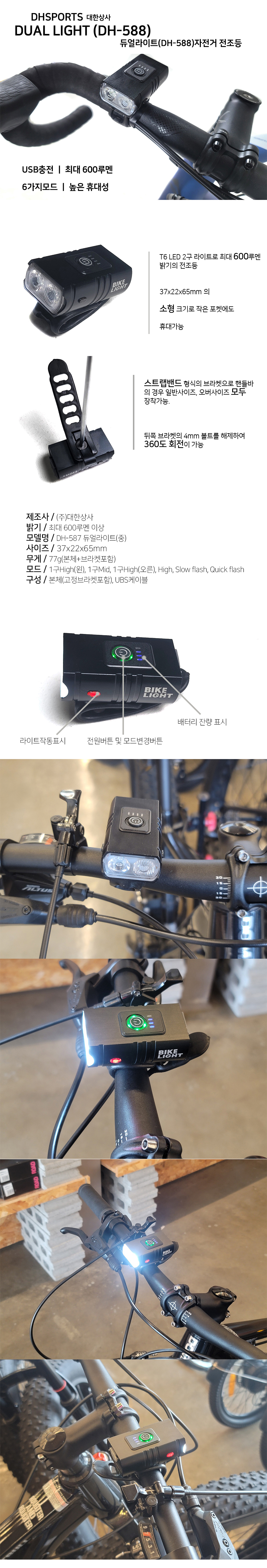 DH스포츠 듀얼라이트 자전거 전조등 600루멘