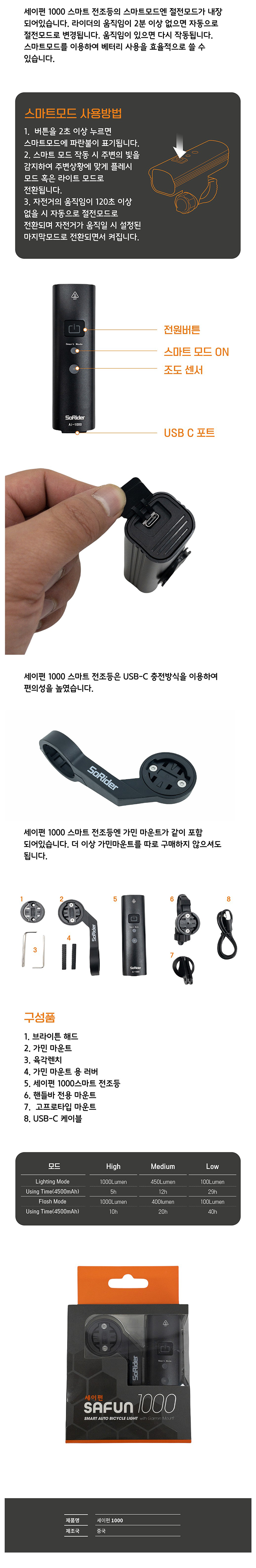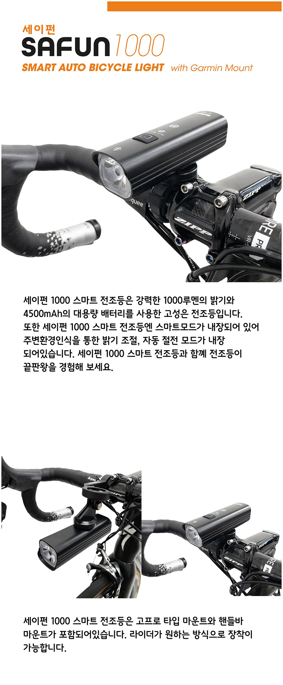 세이펀 1000 가민 마운트 스마트 전조등 1000루멘