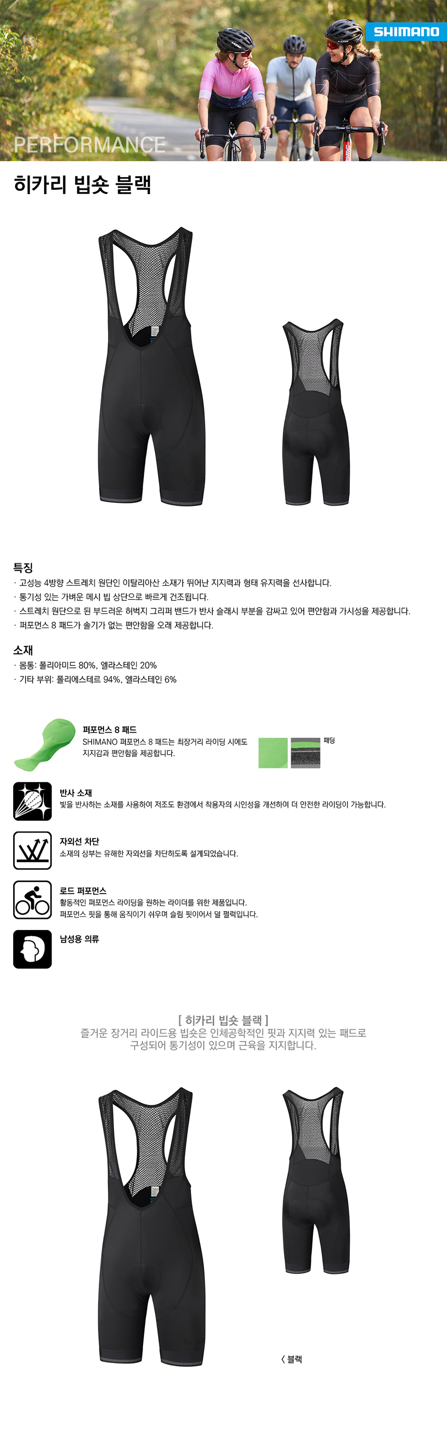 시마노 히카리 남성 장거리 라이딩 빕숏