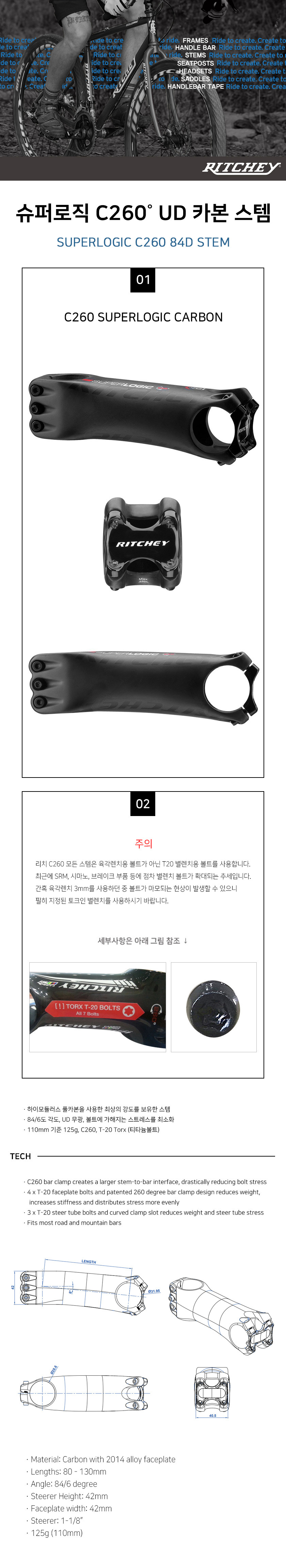 리치 슈퍼로직 UD 카본 스템 C260 31.8