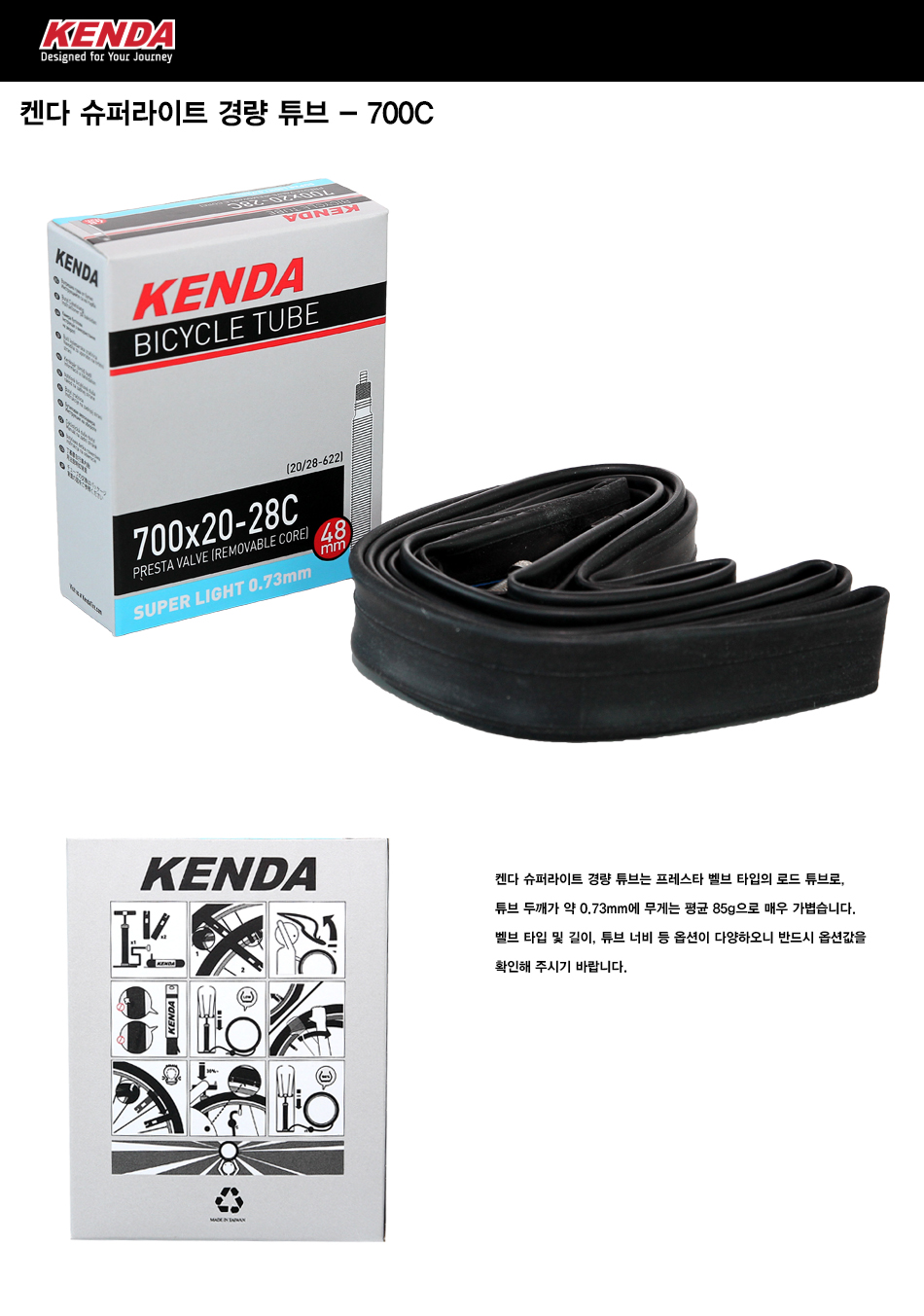 켄다 슈퍼라이트 700x20-28C 경량 튜브 프레스타 RV