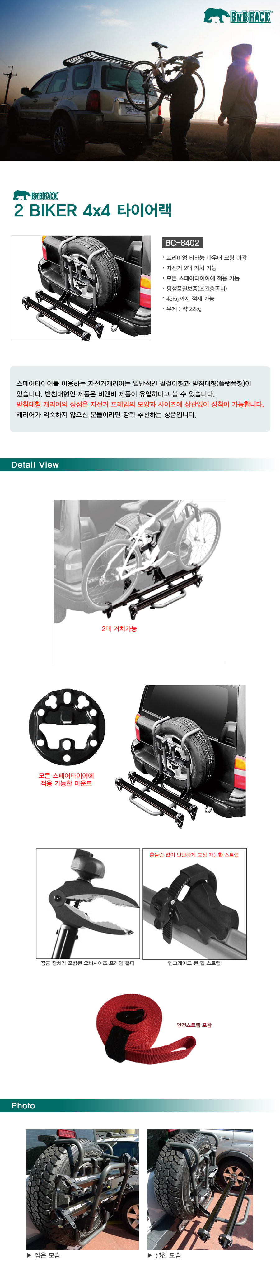 BnB Rack 비앤비랙 BIKER 4x4 타이어랙 BC-8402 2대용 자전거캐리어