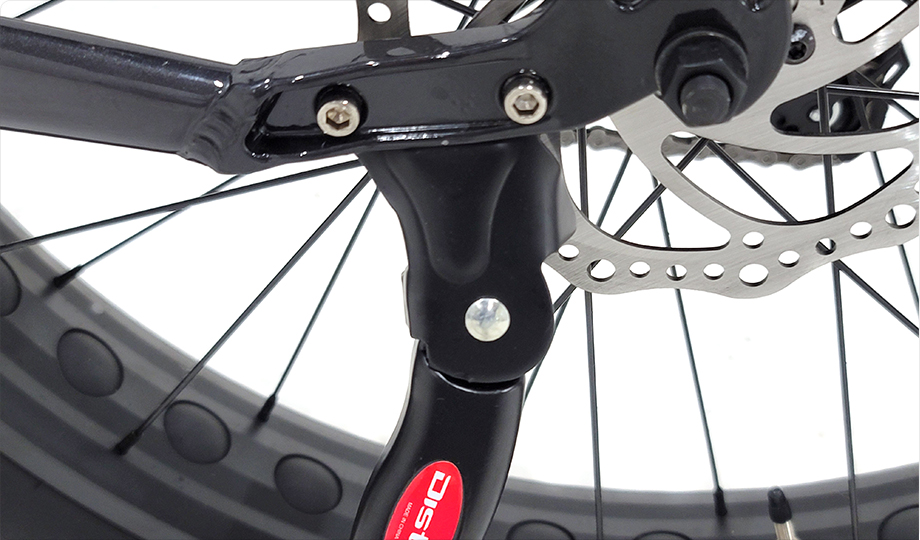 자전거의 체인스테이 안쪽에 킥스탠드 홀을 위치하고 고정하는 방식입니다.