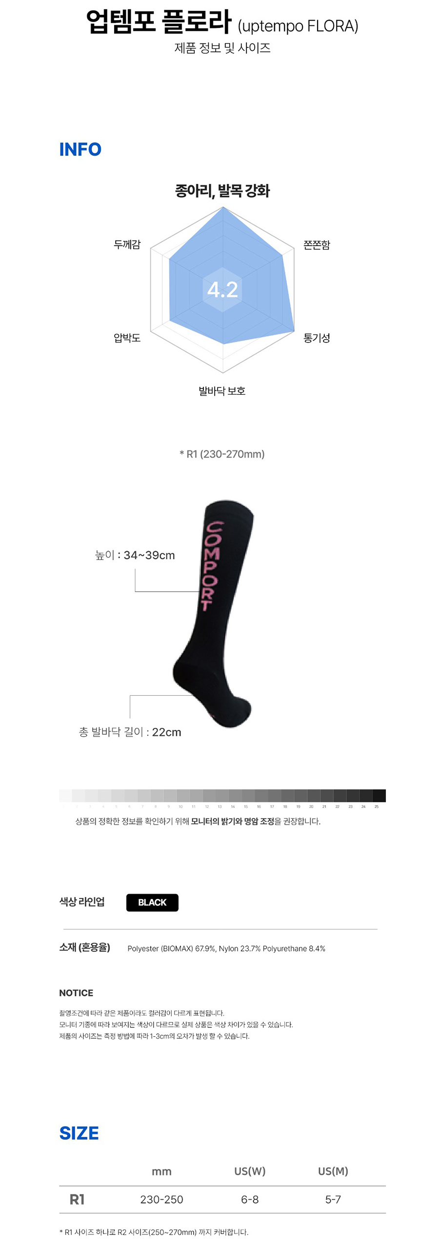 컴포트 업템포 플로라 비복근 지지 풀삭스 양말