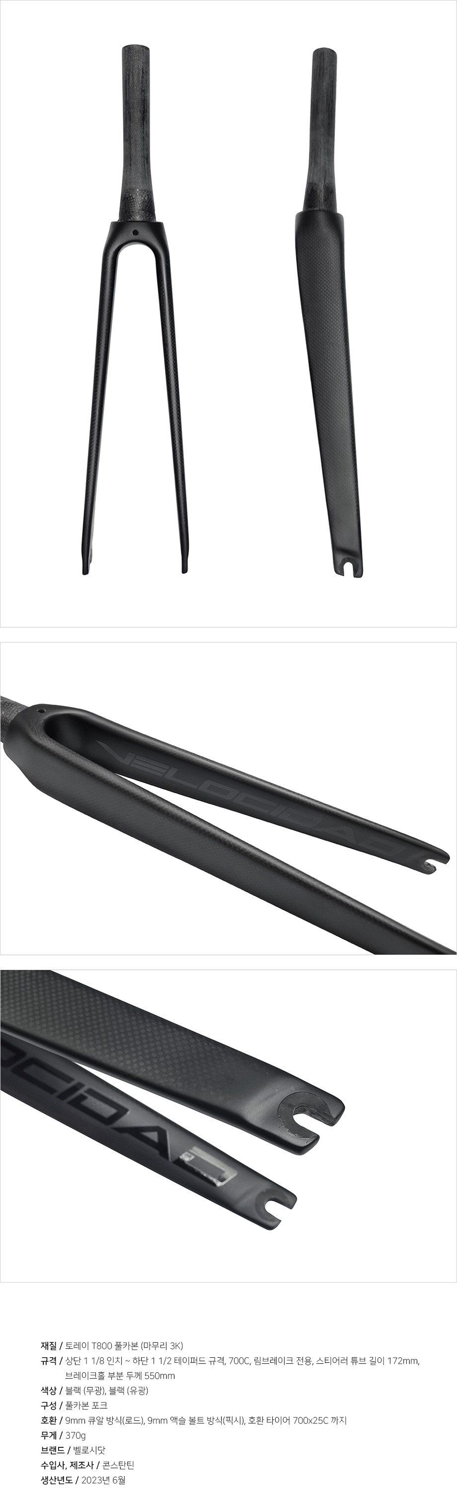 벨로시닷 700C 림브레이크 전용 풀카본 포크