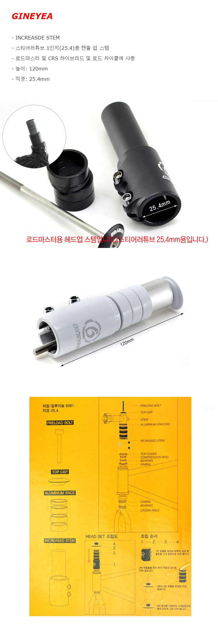 GINEYEA 헤드업 핸들 높이조절 스티어러 익스텐더