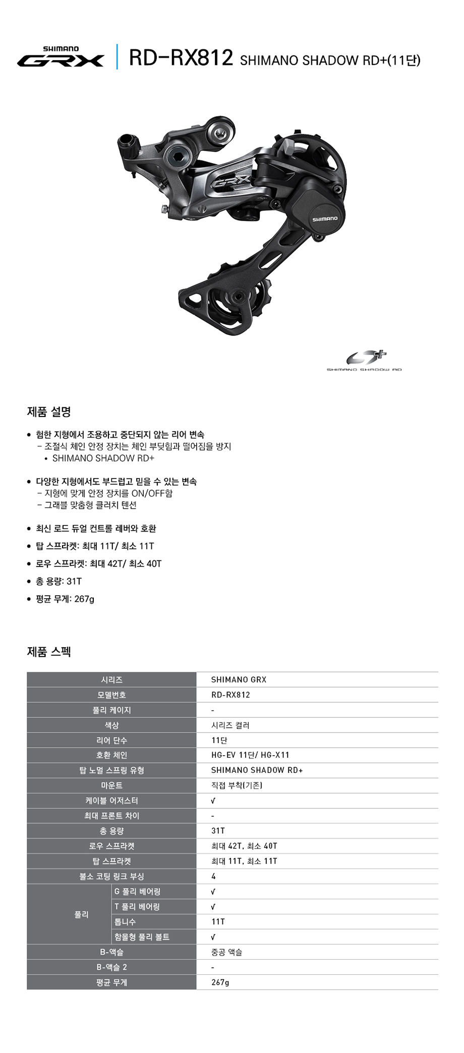 시마노 GRX RD-RX812 뒷변속기 뒷드레일러 11단