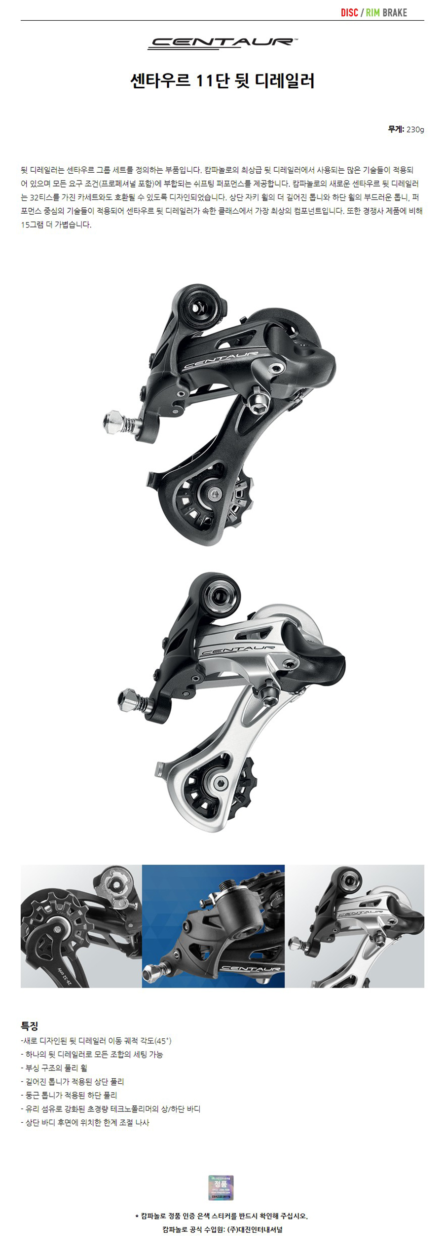 캄파놀로 센타우르 11단 뒷드레일러 미디움게이지