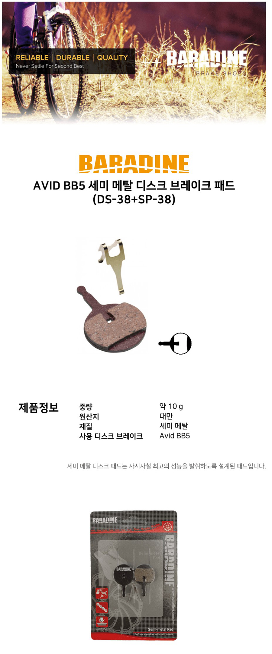 바라딘 AVID BB5 세미메탈 디스크브레이크 패드