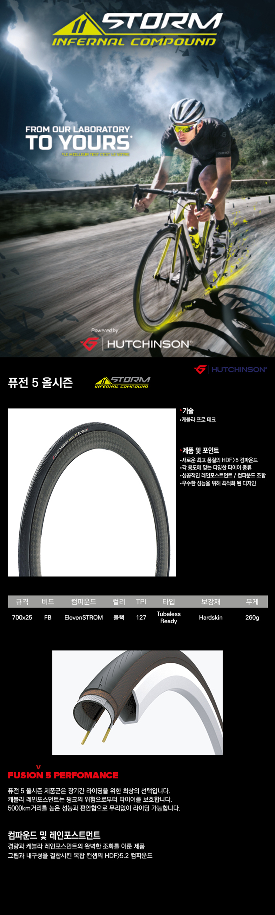 허친슨 퓨전5 올시즌11 스톰 700x25C 타이어 TLR