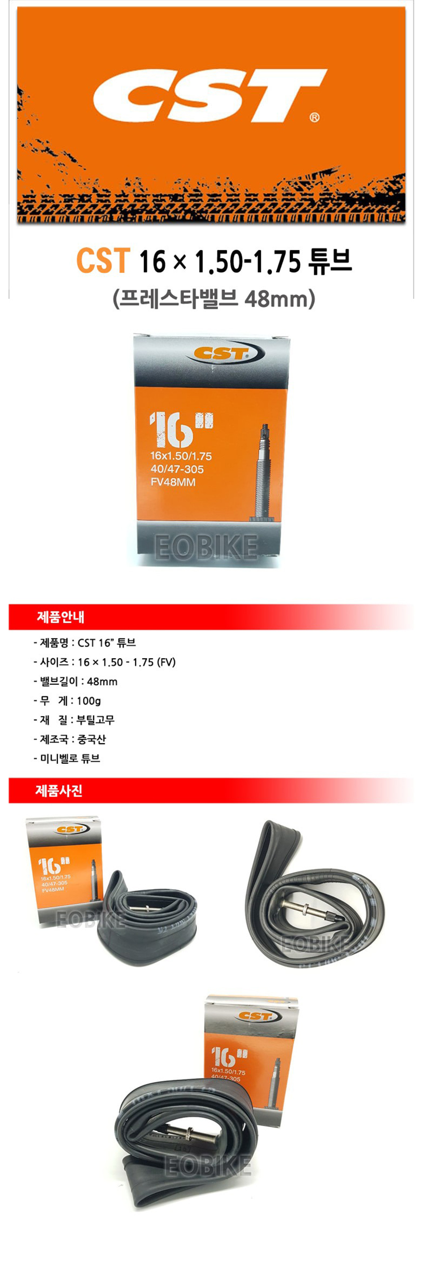 CST 16 x 1.5 - 1.75 인치 튜브 프레스타 48mm