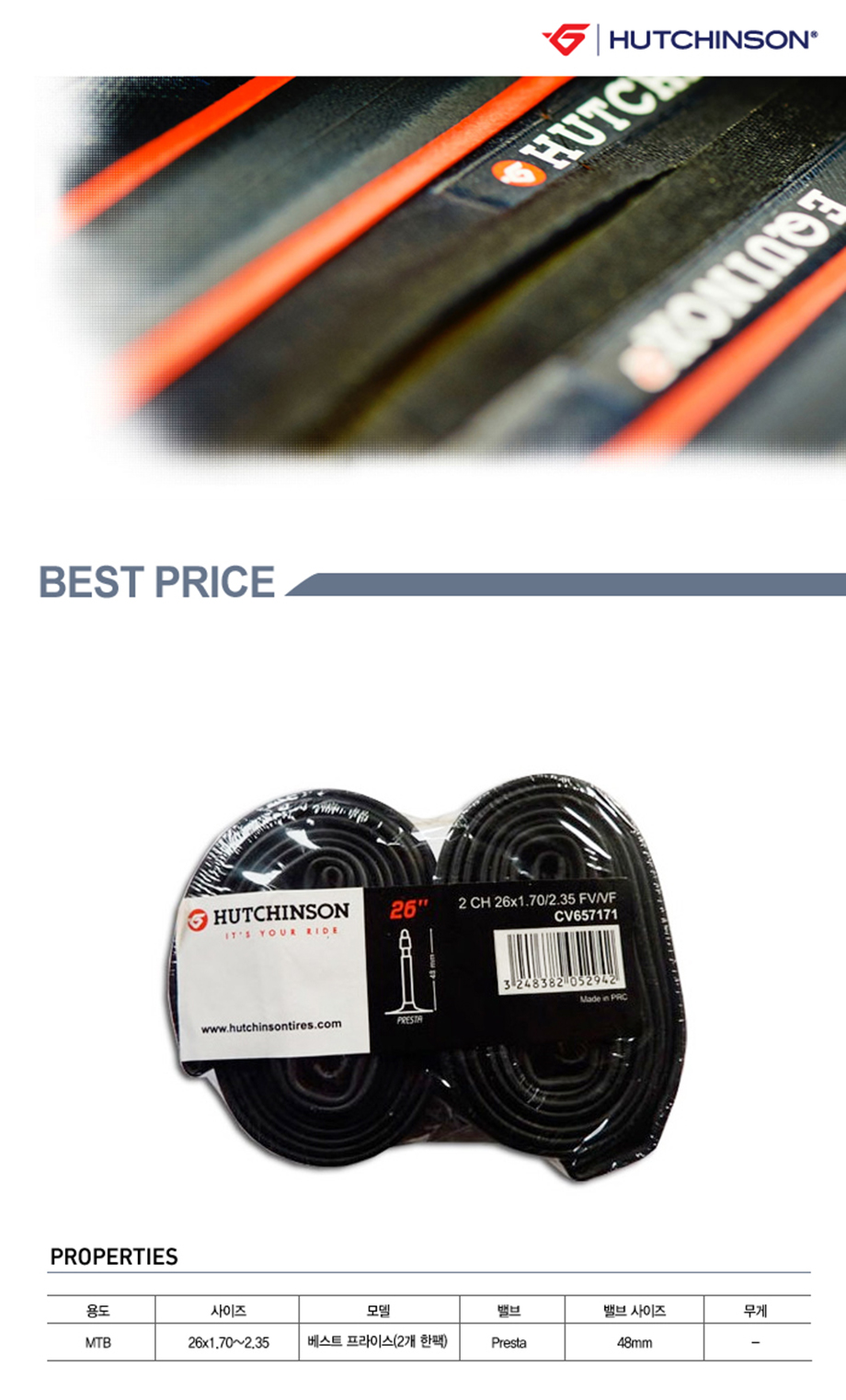 허친슨 베스트 프라이스 MTB 자전거 튜브 26인치
