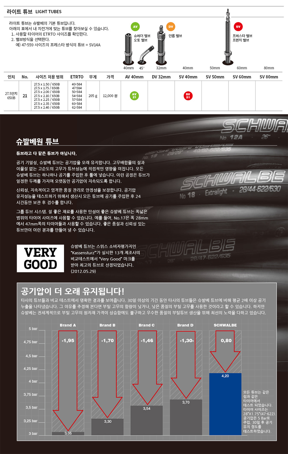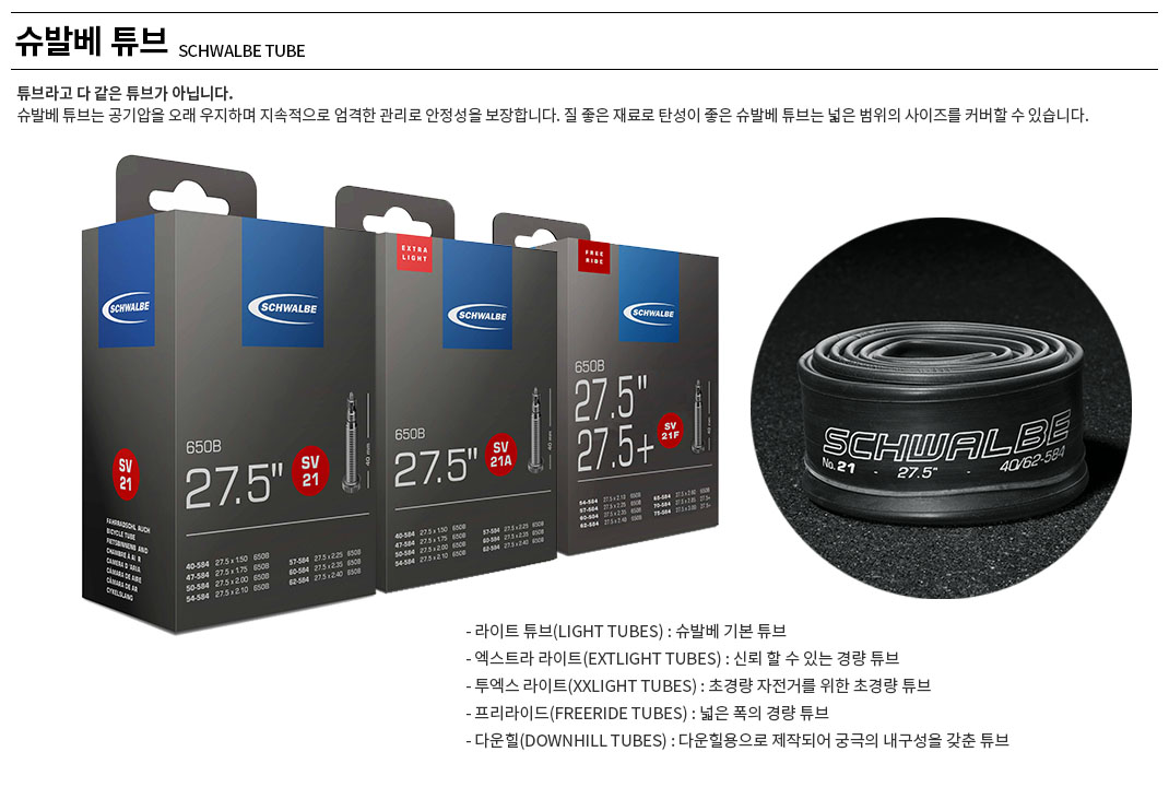 슈발베 27.5인치 라이트 튜브 슈레더 프레스타 40mm밸브