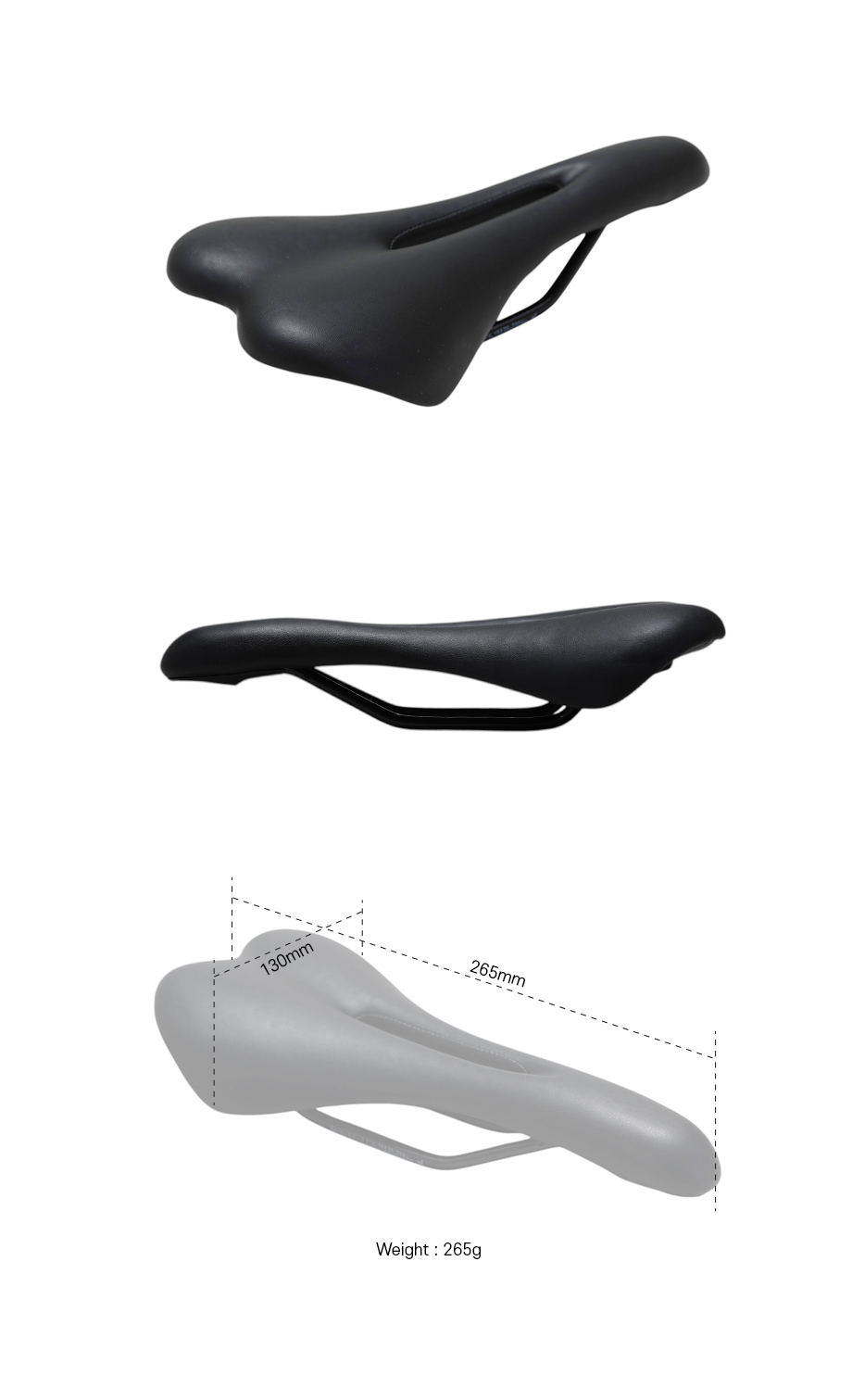 블랙 색상의 레이싱 안장아이템으로 전립선 보호디자인이 적용되어 있으며 통상적인 완성차에 적용되는 순정안장의 쿠션감과 지지력을 제공합니다.