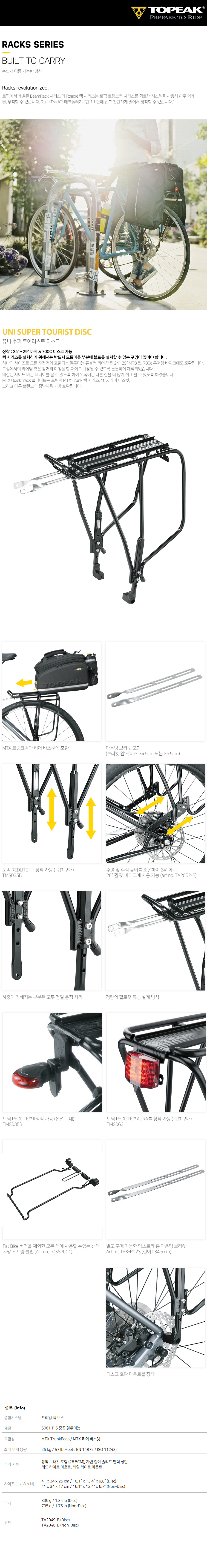 토픽 UNI SUPERTOURIST DISC 짐받이 랙