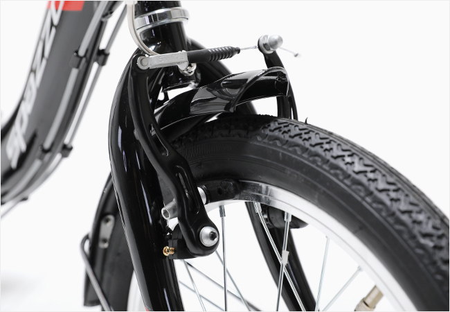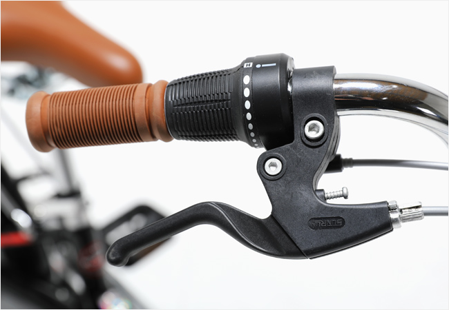 핸들바의 장착된 7단 그립시프터를 통해 7단의 변속기어를 컨트롤 할 수 있으며 안전한 V-브레이크가 장착되었습니다.