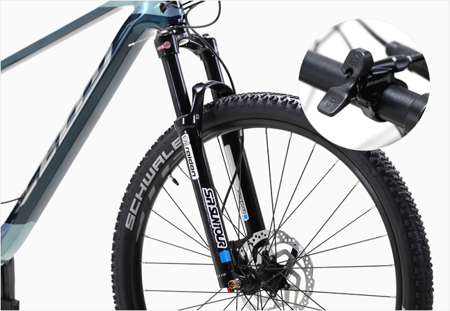 프론트 포크에는 경량 SR 선투어 에어 스프링 포크가 장착되어 있습니다.