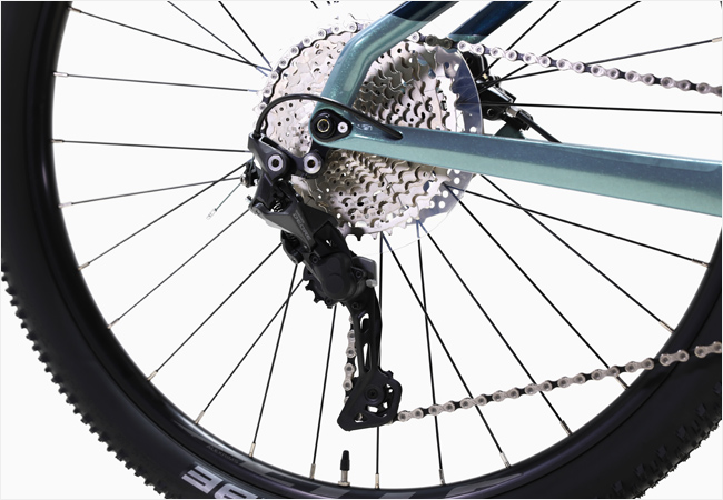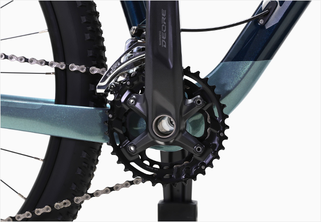 구동계는 시마노 DEORE 22단(2x11) 변속시스템이 적용되어 거친 노면에서도 부드럽고 일관된 변속 성능을 발휘하며,