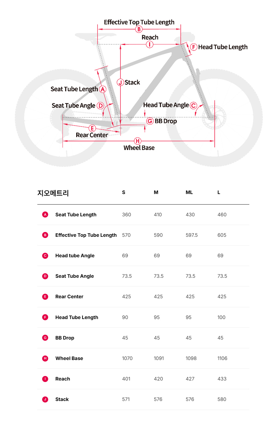 프레임 사이즈는 S / M / ML / L,