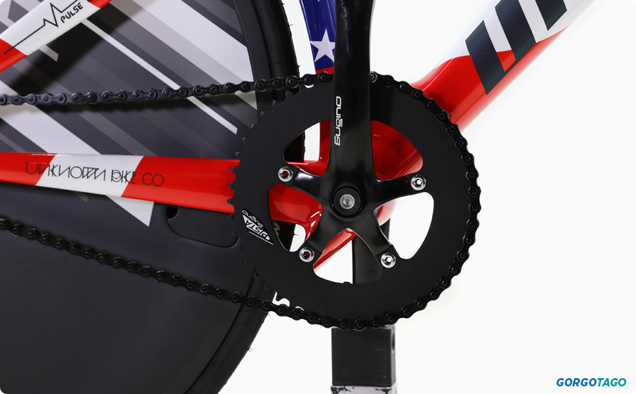 크랭크는 스기노 XD PISTA(48T)가 적용되었으며 언노운의 T238 티탄레일 안장과 같은 수준높은 컴퍼넌트들이 함께 구성되었습니다.