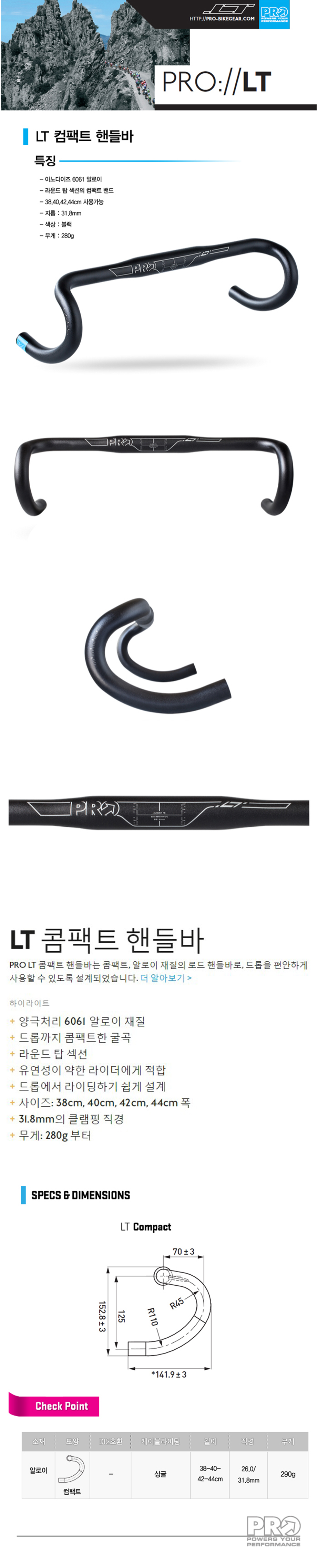 시마노 PRO 프로 LT 컴팩트 픽시 드롭바 자전거 핸들바