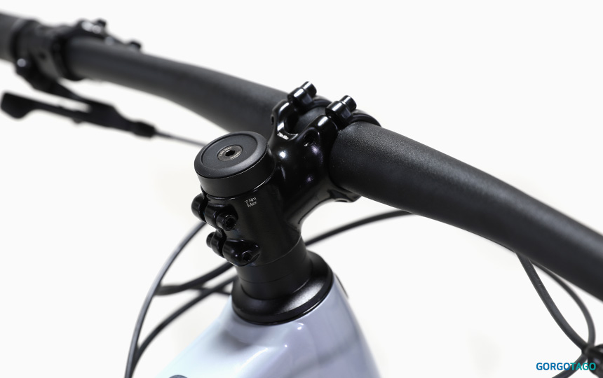 콕핏은 31.8 오버사이즈 라이저바와 숏 리치 스템 조합으로 방향 전환이 빠르고 전륜 조작감이 또렷한 쪽에 가깝습니다.