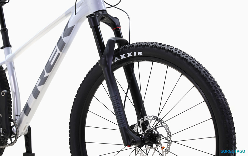 앞 서스펜션은 RockShox Recon Gold RL 120mm 포크가 들어가고, 상단 락아웃 레버로 상황에 따라 반응을 빠르게 바꿀 수 있어 포장도로와 비포장 구간이 섞여도 다루기 좋습니다.