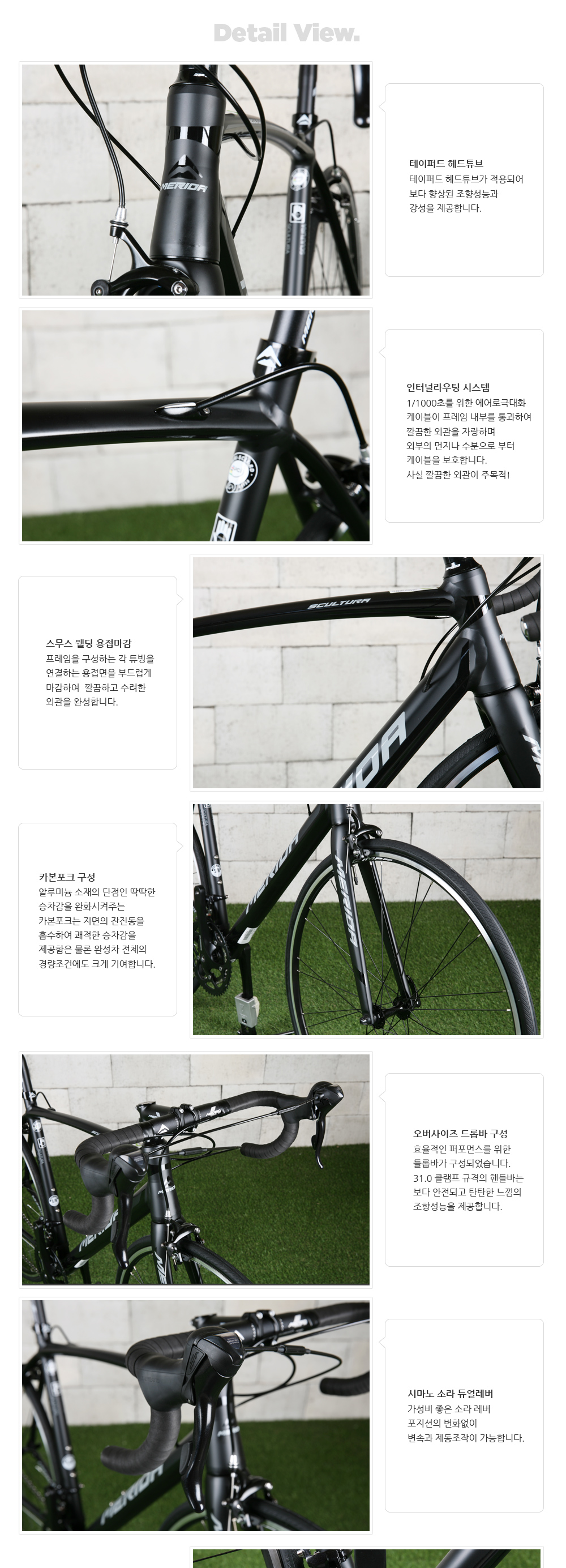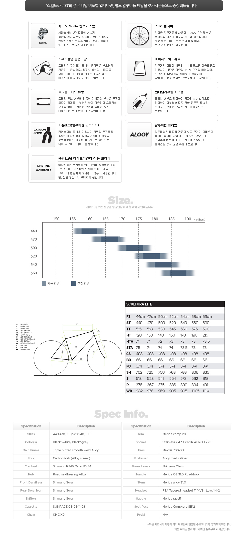 | 프레임 | 레이스라이트 알루미늄, 트리플버티드, 스무스웰딩, 인터널라우팅, 테이퍼드헤드튜브 |