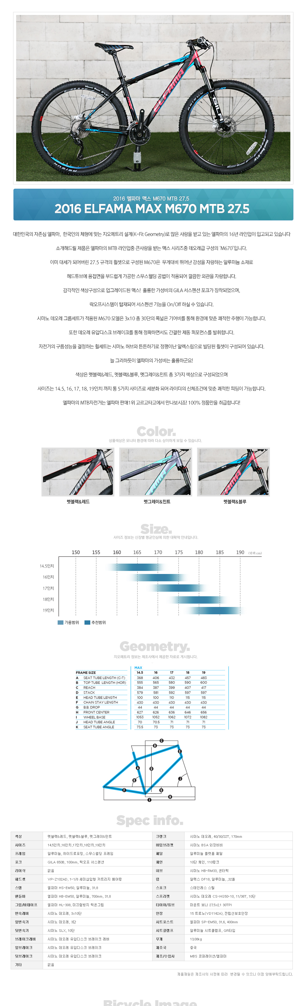 | 사이즈 | 14.5인치, 16인치, 17인치, 18인치, 19인치 |