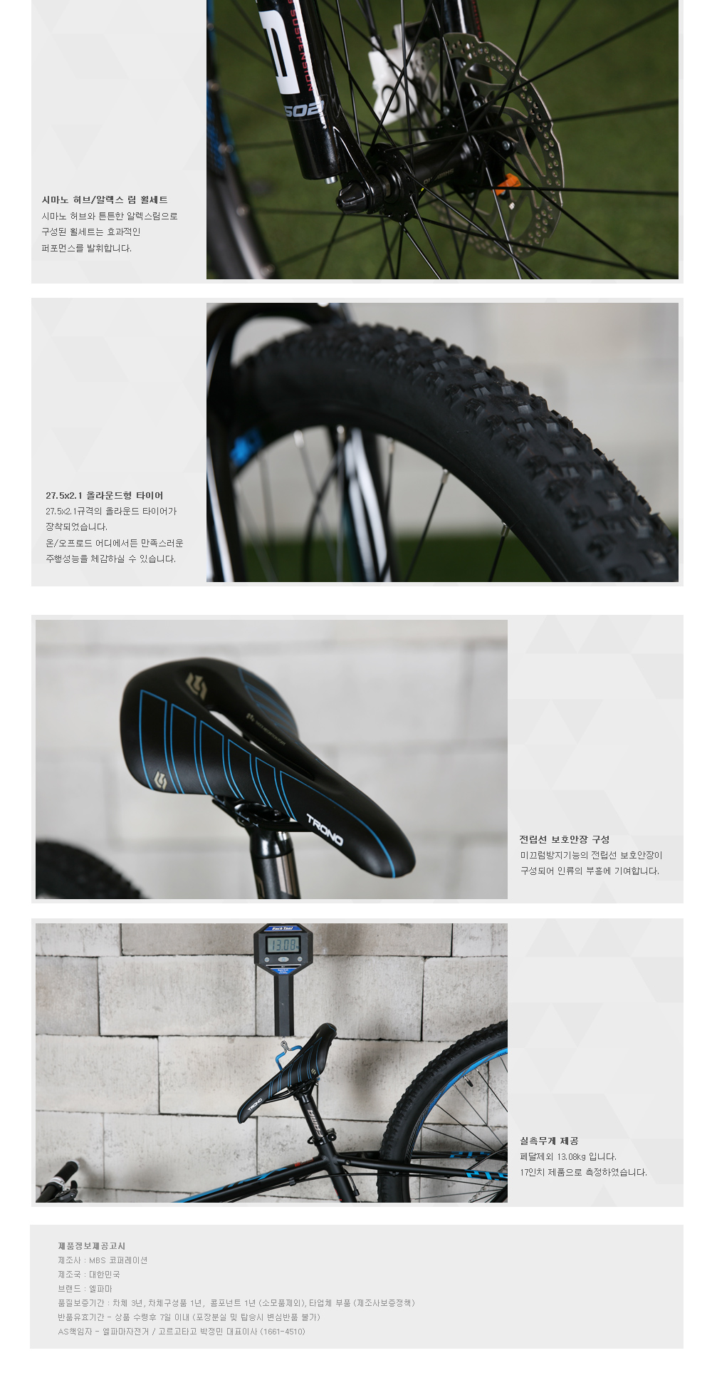 | 타이어/튜브 | 마운트 보나 27.5x2.1, 30TPI, F/V |
