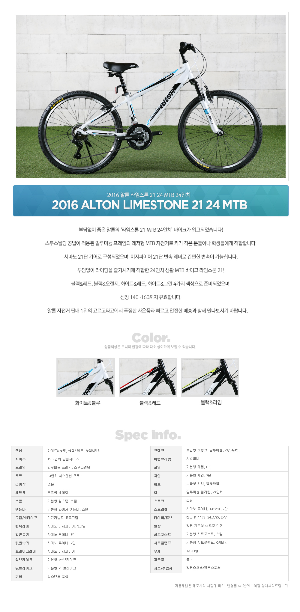 | 제조/수입사 | 알톤스포츠/알톤스포츠 |