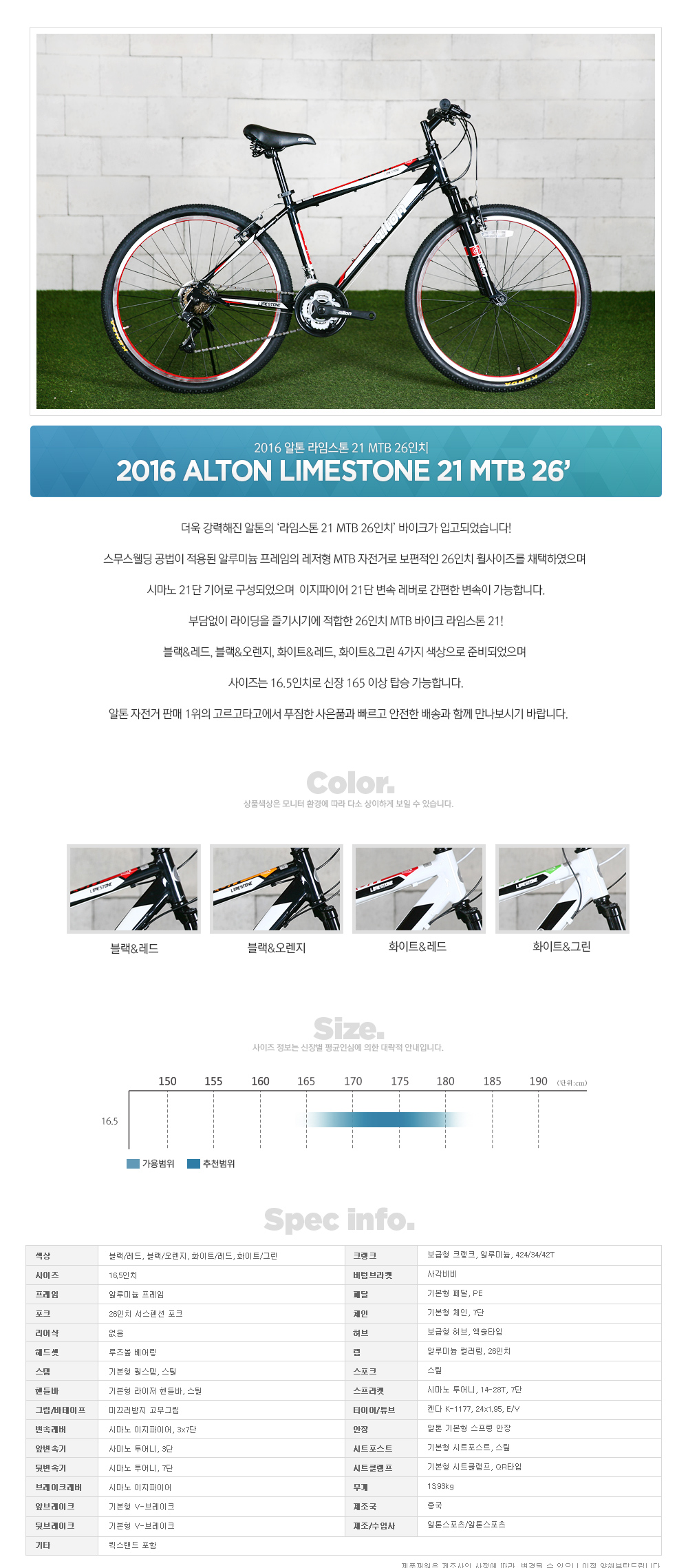 | 제조/수입사 | 알톤스포츠/알톤스포츠 |