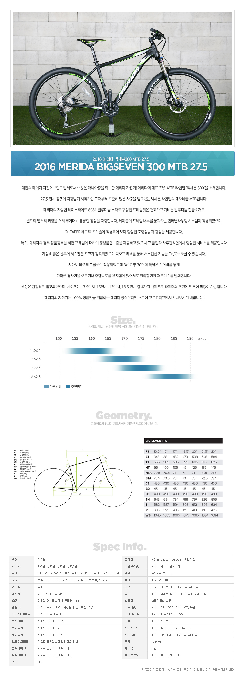 2016 메리다 빅세븐 300KR MTB 27.5
