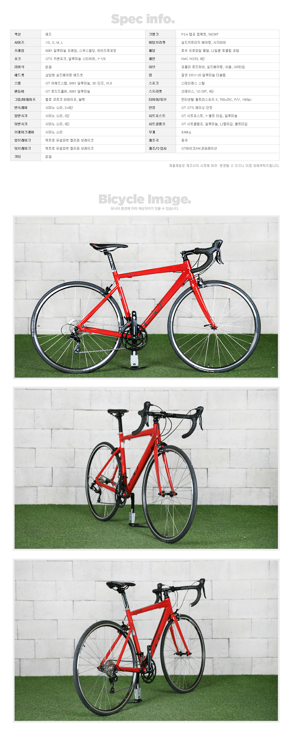 | 제조/수입사 | GT바이크/HK코퍼레이션 |