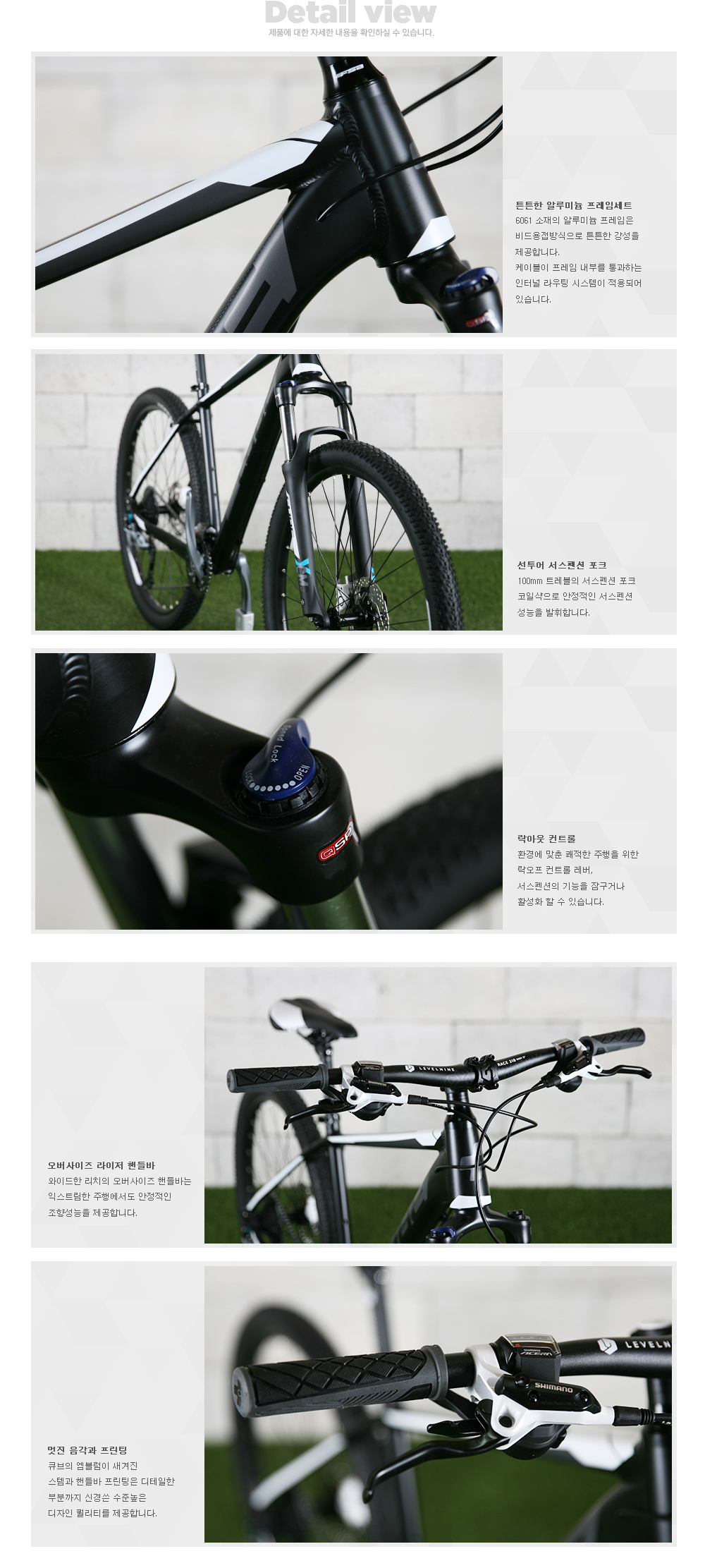 | 프레임 | 6061 알루미늄 프레임, 인터널라우팅, 테이퍼드 헤드튜브 |