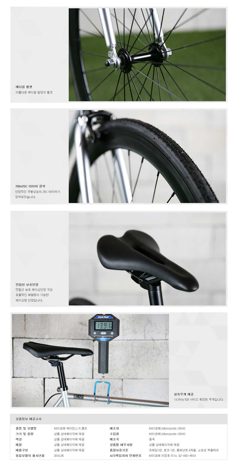 | 타이어/튜브 | 700x25C, F/V |