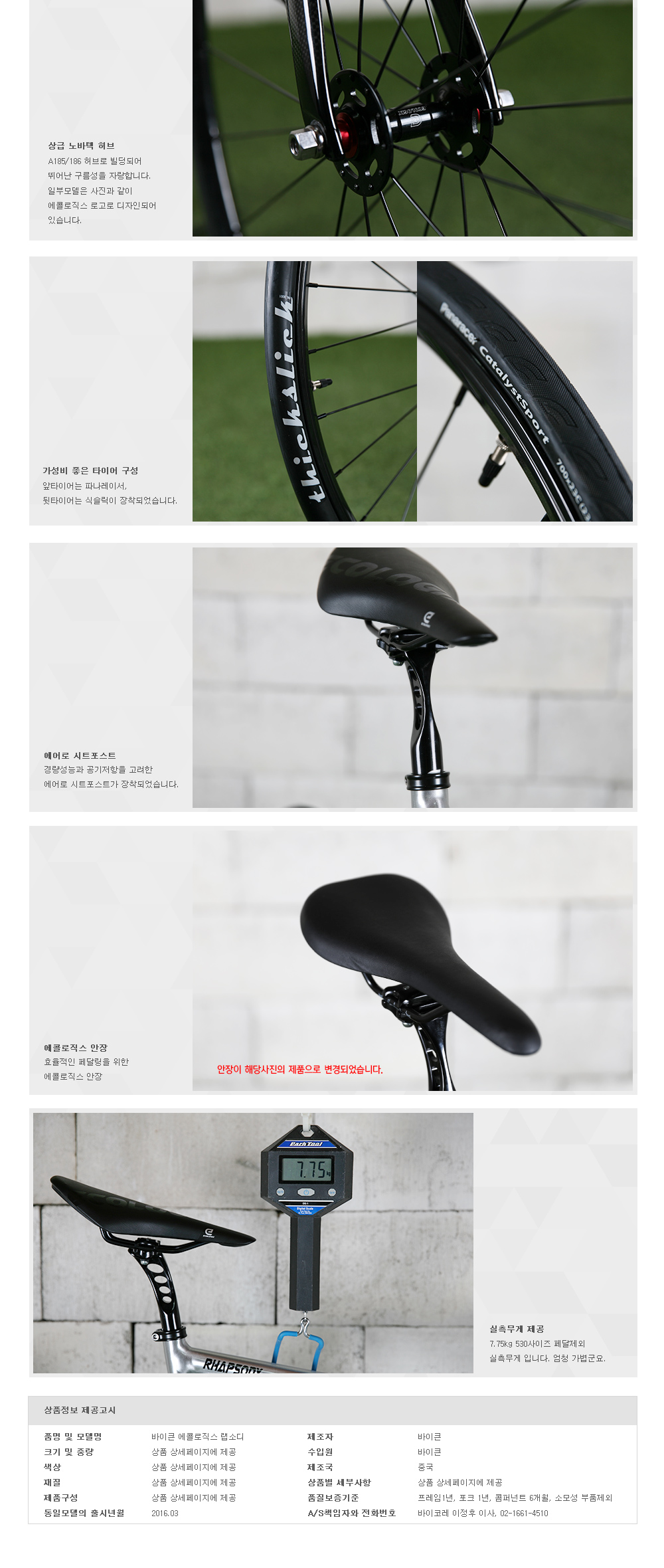 | 타이어/튜브 | 앞: 파나레이서 700x23c, 뒤: WTB 식슬릭 700x25C, F/V |