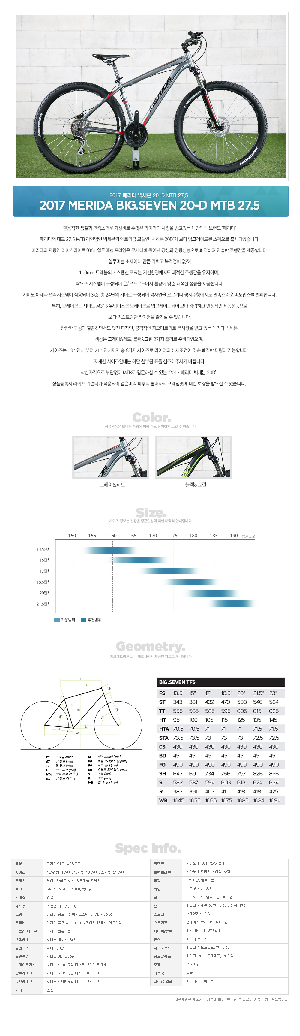 2017 메리다 빅세븐 20D MTB 27.5