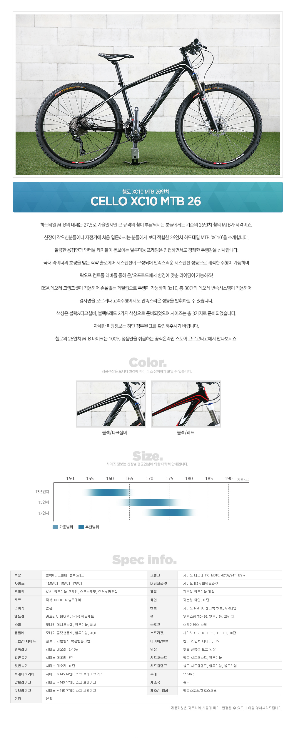 15 첼로 XC10 MTB 26인치 30단 에어샥