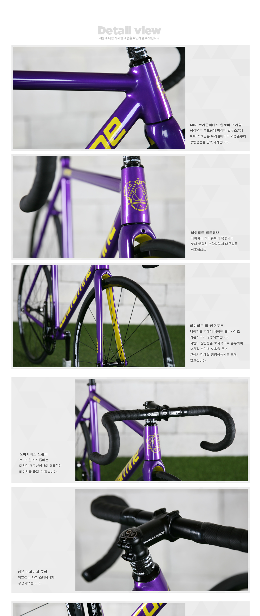 | 프레임 | 6069 알루미늄 프레임, 트리플버티드, 스무스웰딩, 테이퍼드헤드튜브 |