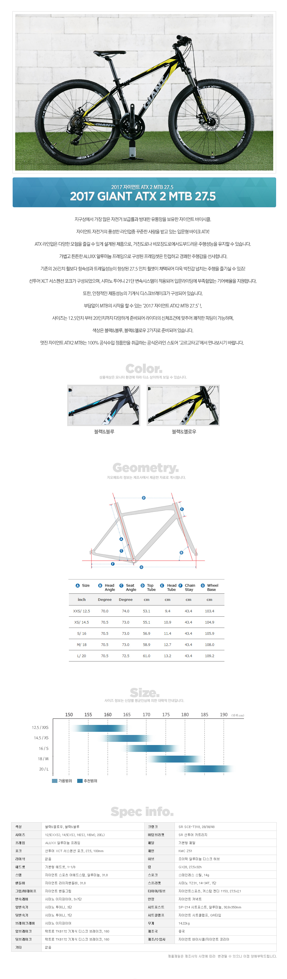 | 제조/수입사 | 자이언트바이시클/자이언트코리아 |