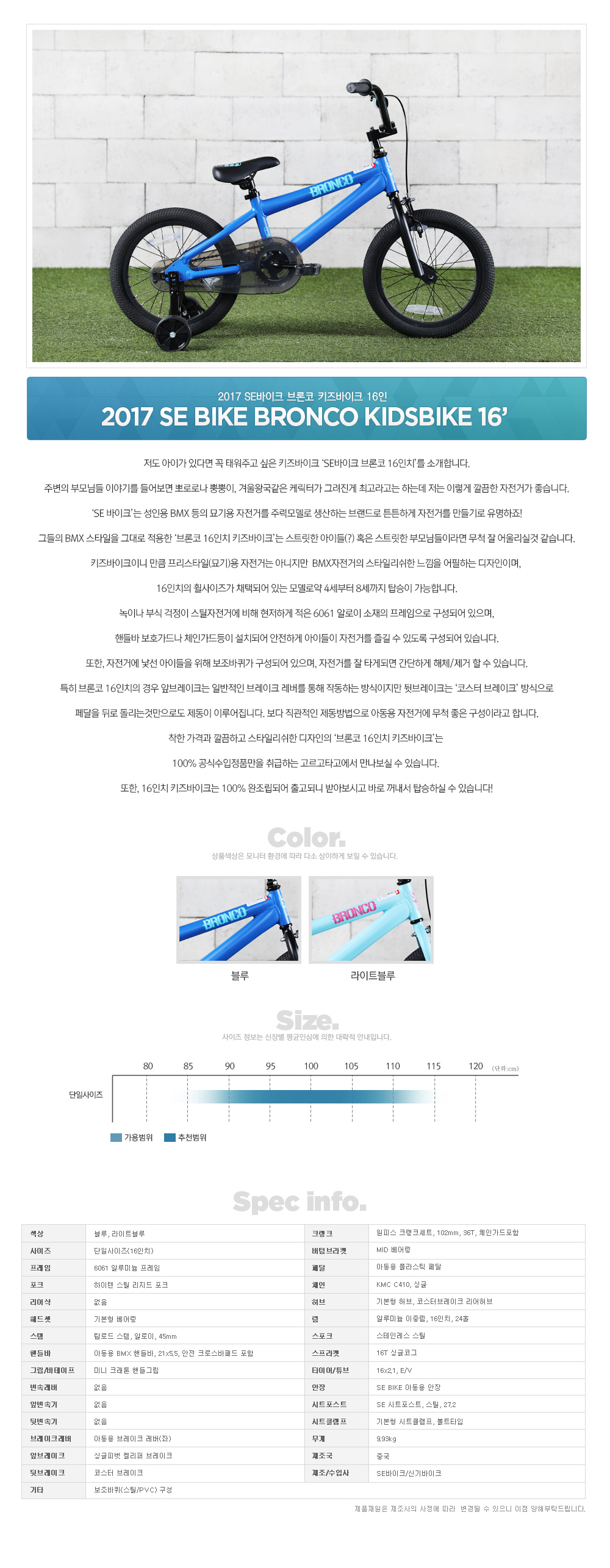 | 제조/수입사 | SE바이크/신기바이크 |